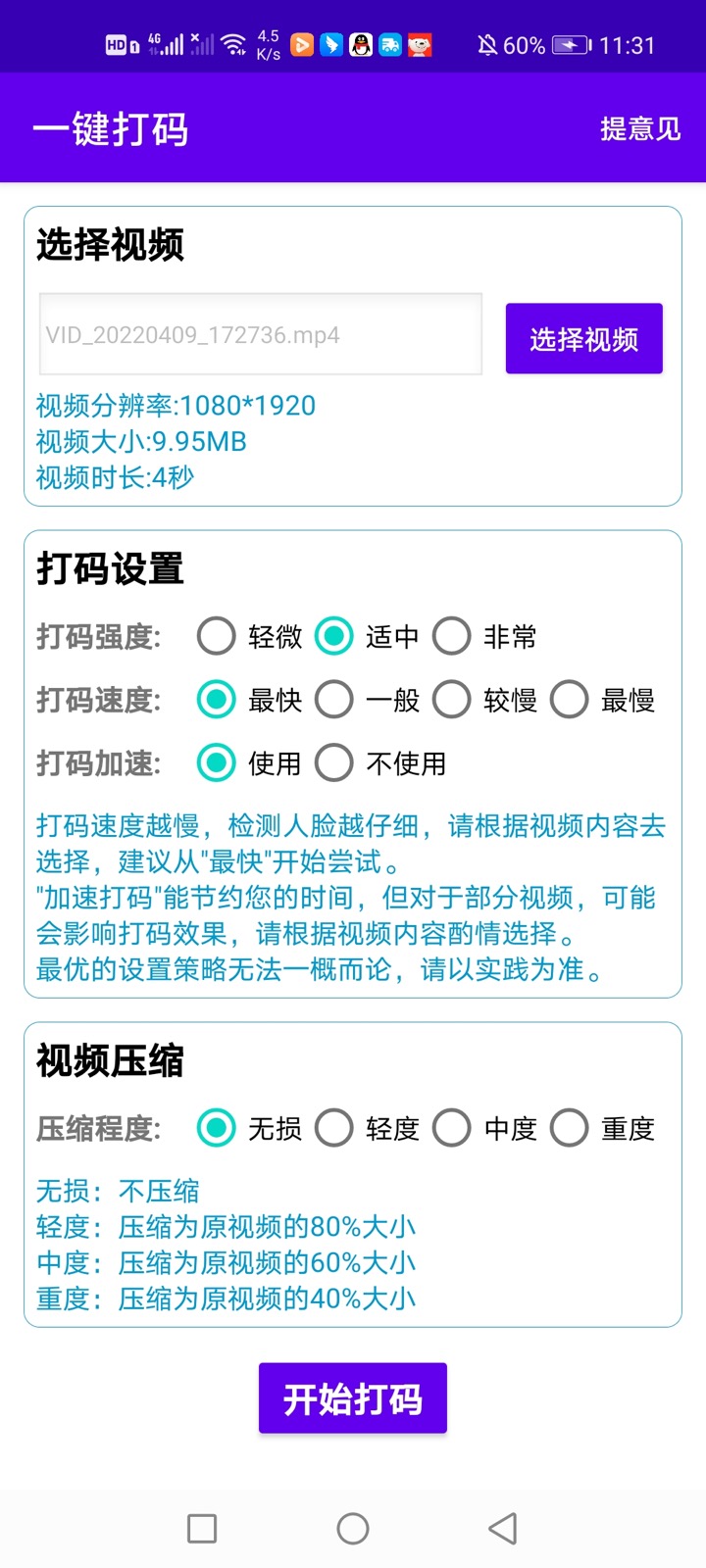 1、使用主流的千元机,选择合适的打码设置,处理30fps的720p视频,能够达到1:1的时效,即10秒的视频能够在10秒内完成打码